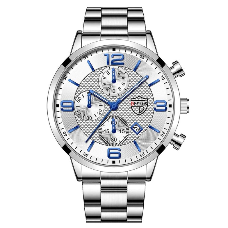 🗓️ Kalenderanzeige: Bleiben Sie mühelos auf dem Laufenden mit einer praktischen Kalenderfunktion, die nahtlos in das Ziffernblatt integriert ist.