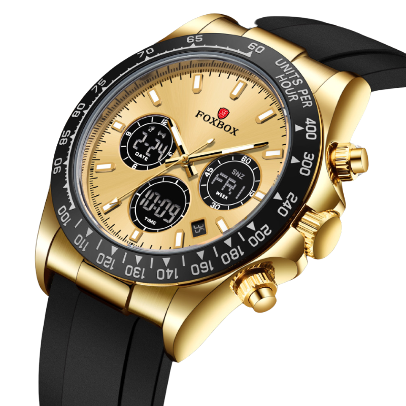 Verpassen Sie nicht die Gelegenheit, eine perfekte Kombination aus Funktionalität und Stil zu besitzen. Fügen Sie diese Uhr noch heute Ihrer Sammlung hinzu!