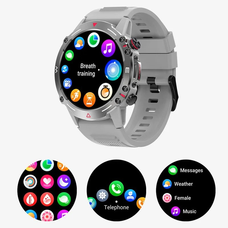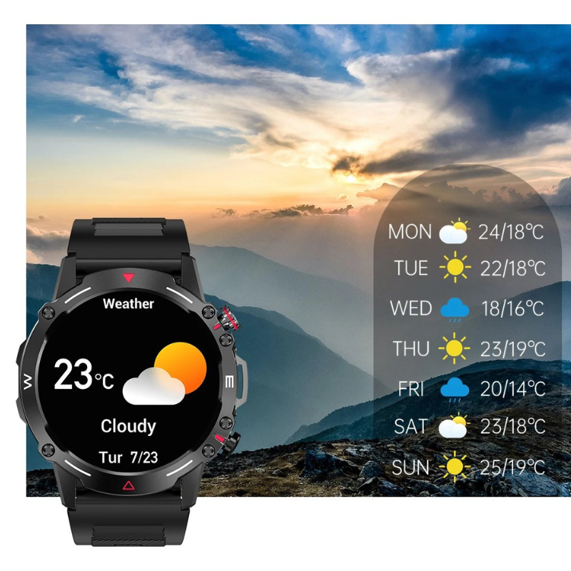 🌦️ Smarte Benachrichtigungen & Wetter: Seien Sie informiert mit Anrufen, SMS-Benachrichtigungen und Wettervorhersagen direkt auf Ihrem 1,43-Zoll-AMOLED-Display.