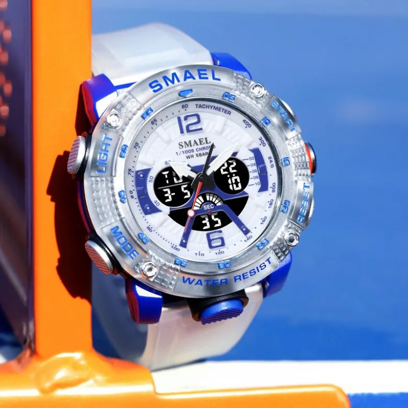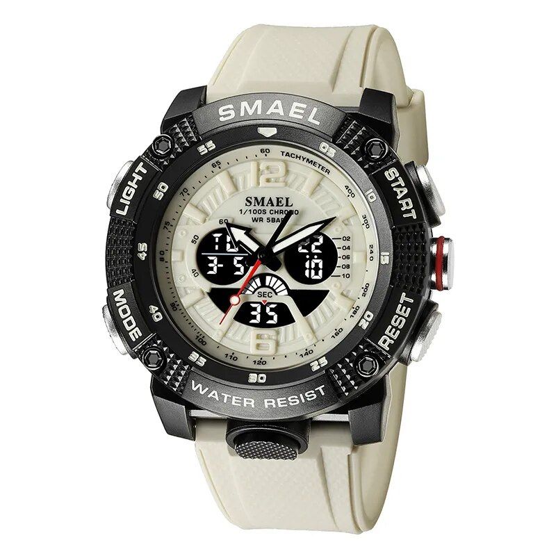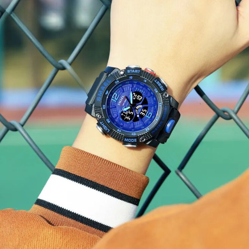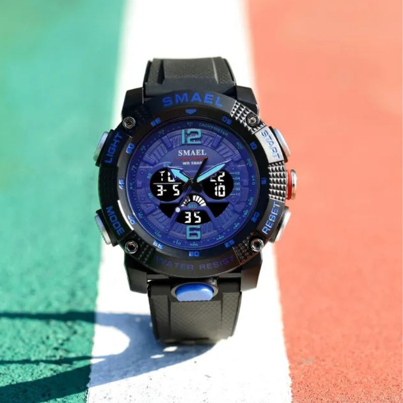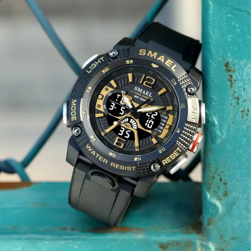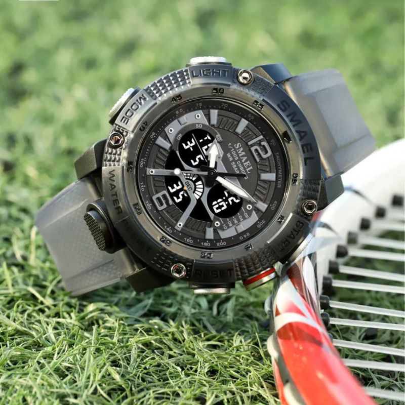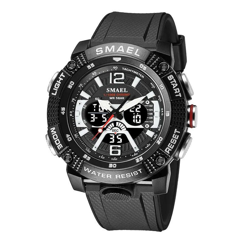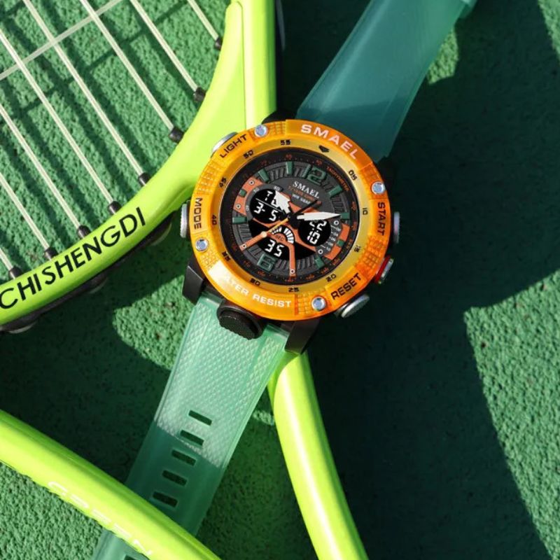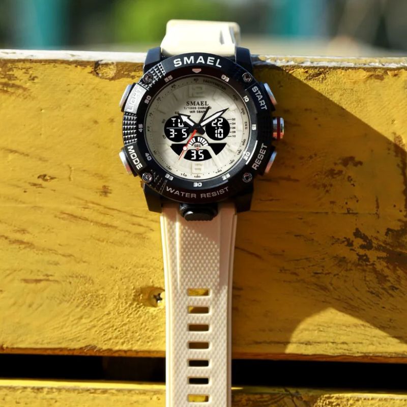 Genießen Sie ein leuchtendes Display, Stoßfestigkeit, Alarm, Stoppuhr und präzise Quarzbewegung in einem praktischen Paket.