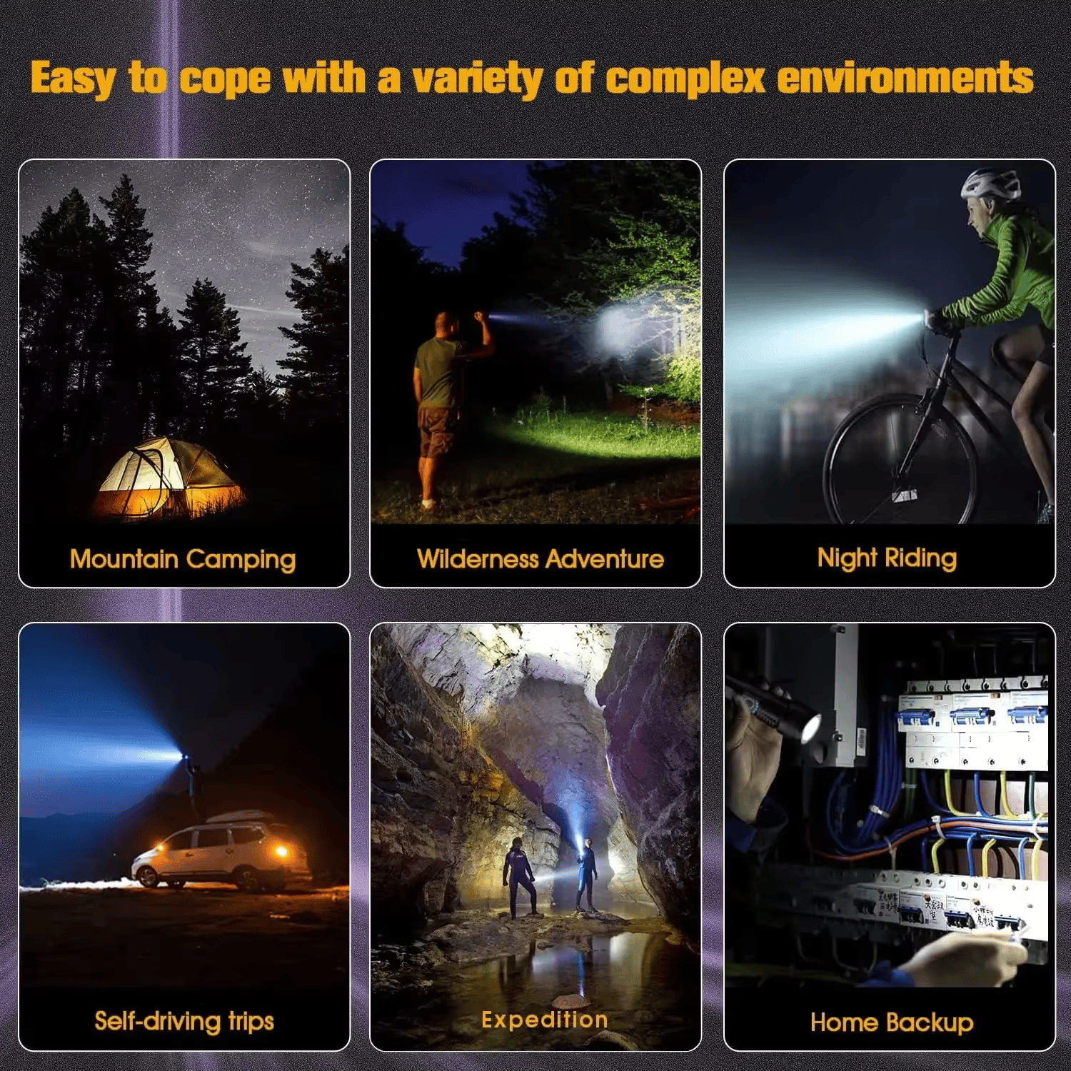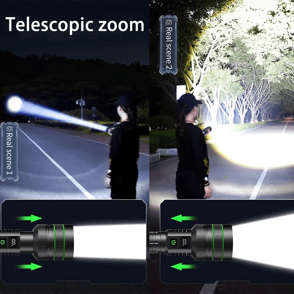 Entdecke unsere hochwertige LED Taschenlampe mit 5 verschieden Leucht modies – der perfekte Begleiter für jede Situation. Mit einer Reichweite bis zu 1500 Metern, eingebauter Powerbank und 10 Stunden Laufzeit lässt unsere Taschenlampe dich nie im dunklen Sitzen.